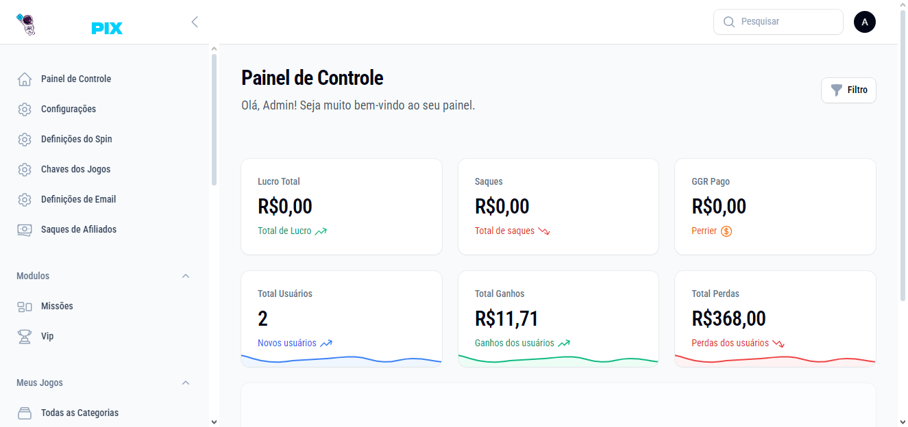 Script de jogos com opção de API de casas de jogos fornecedoras, contém partes em lingua inglesa, podendo ser alterado por ser código aberto.